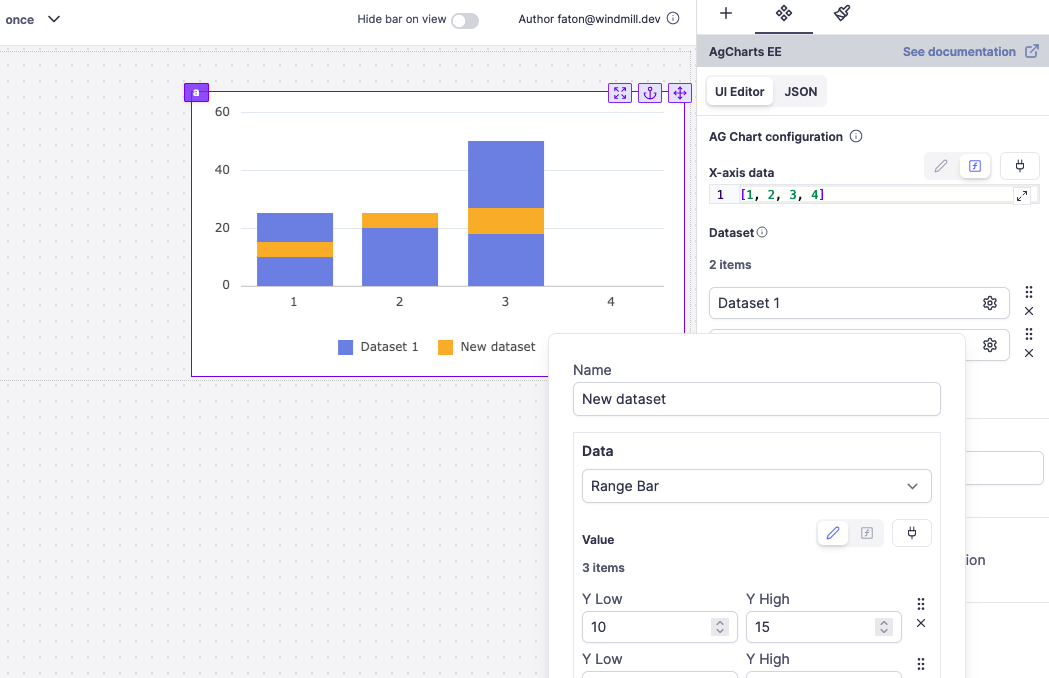 • Diverse Chart Types: Supports multiple chart types including Bar, Line, Scatter, and both Area & Range Bar that are exclusive to Enterprise Edition (because Ag charts key needed).