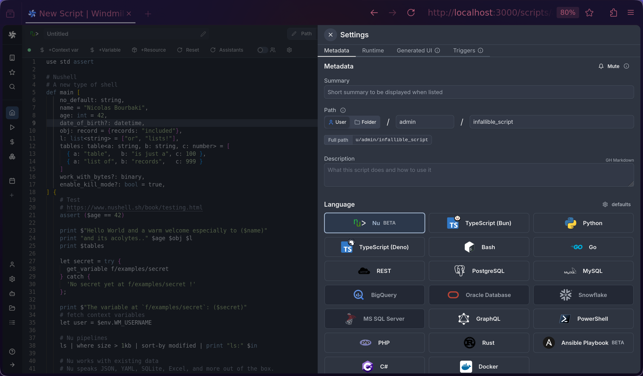 Windmill AIFlow editorScript editorv1.270.0