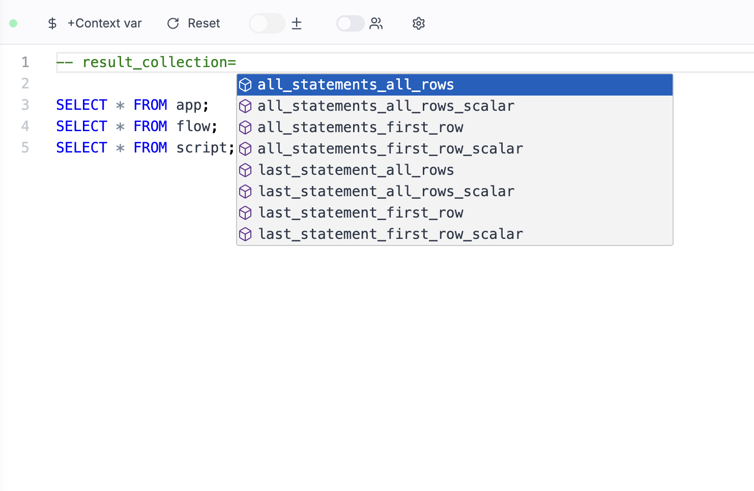 • Fills flow loops iterator expressions from context.