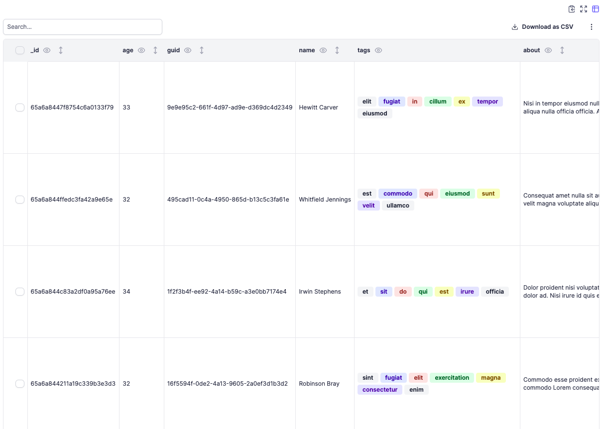 • Download as CSV and JSON.