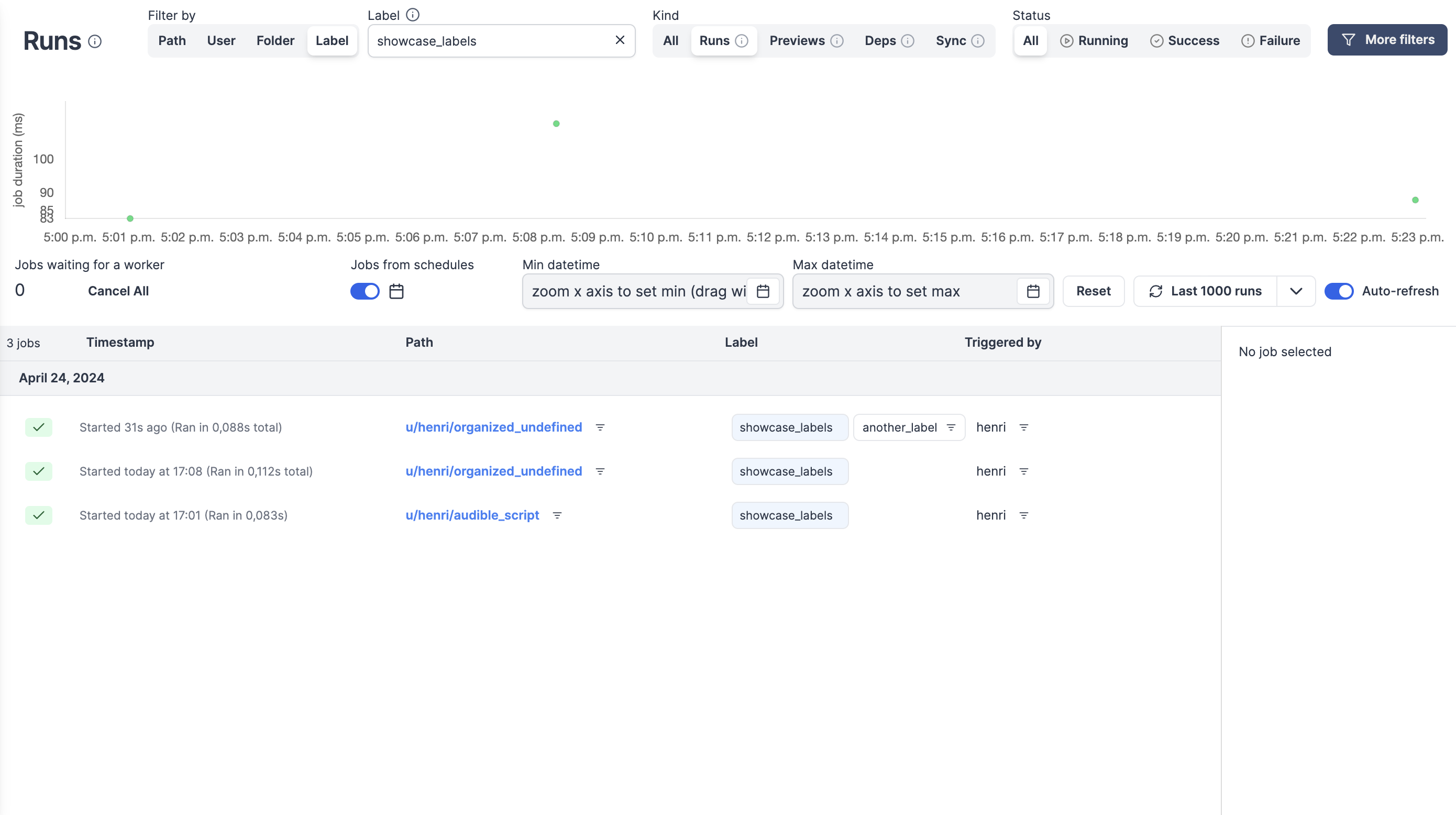 Now the db only stores at most 5Kb of logs per job rows, reducing the pressure on it by order of magnitudes, while users can now run jobs with unlimited logs with minimal impact on the worker or db. And the logs are still as live as before