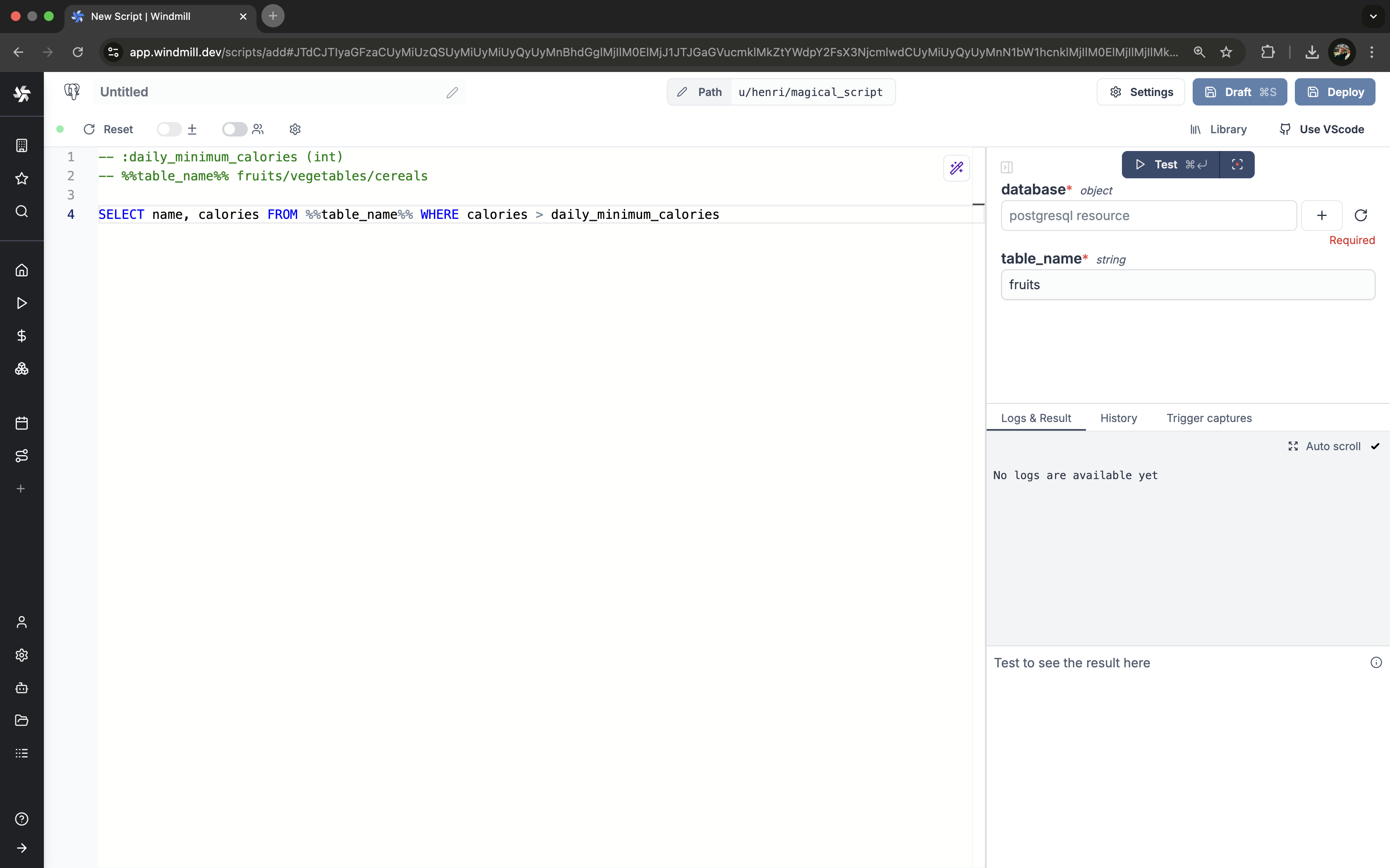 Script editorDatabase